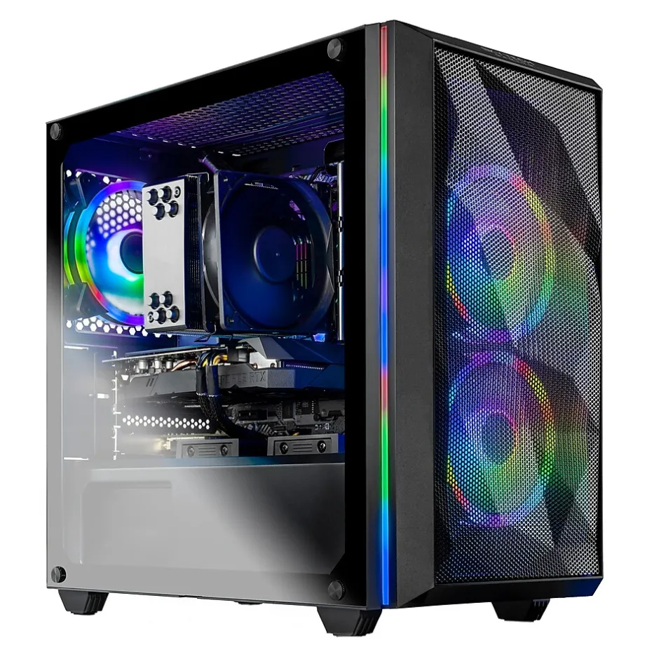 Designed for Esports and online multiplayer games like Fortnite, CS:GO and Valorant, a Skytech Chronos Mini was made for competitive gamers. Featuring completely upgradable components and designed with excellent cooling capability with 4 fans to move massive amounts of air. Chronos Mini is a great choice for mid-range performance and first time PC gamers.