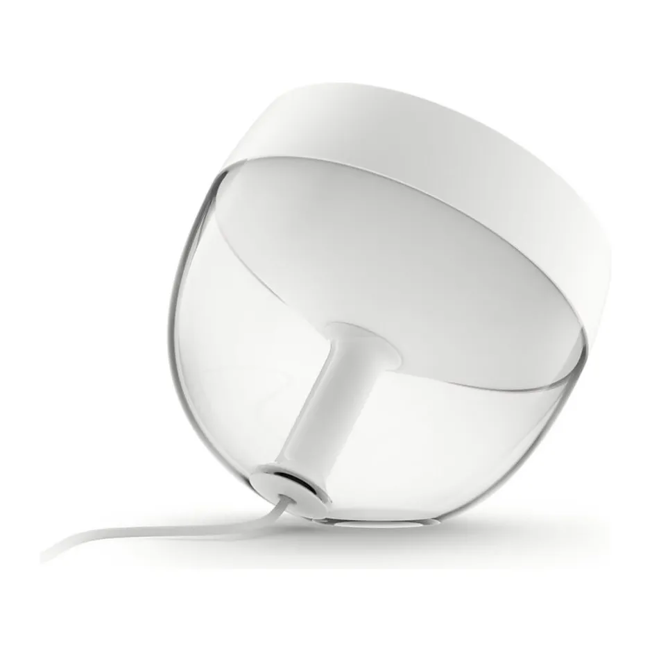 Set the mood in any room of your home with the stylish Philips Hue Iris lamp in white. With a light that both washes the wall with color and offers a gentle backlight, the Iris provides a sophisticated, unique effect. Add a Hue Bridge to unlock the full suite of smart lighting features.