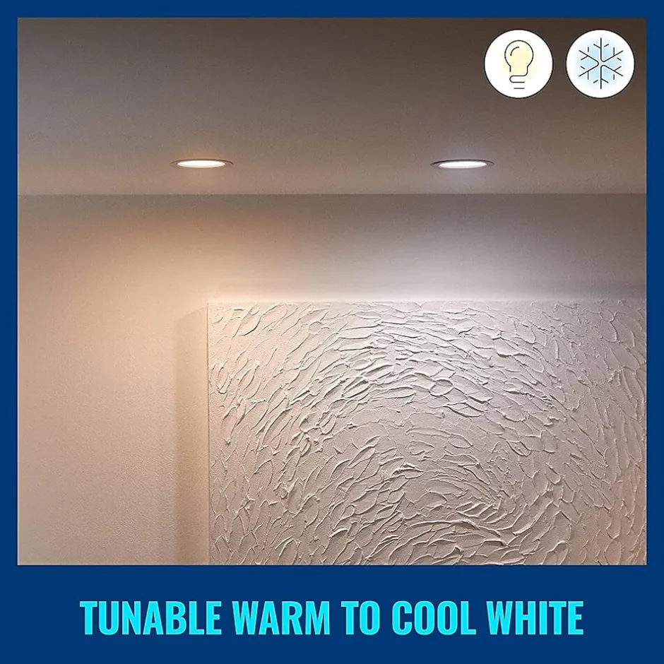 Get colorful smart light in your downlights with the full-color WiZ smart 6″ downlight, which installs easily in a recessed can light. Use with the WiZ app or your voice to dim and brighten or use preset light modes on Wi-Fi setups.