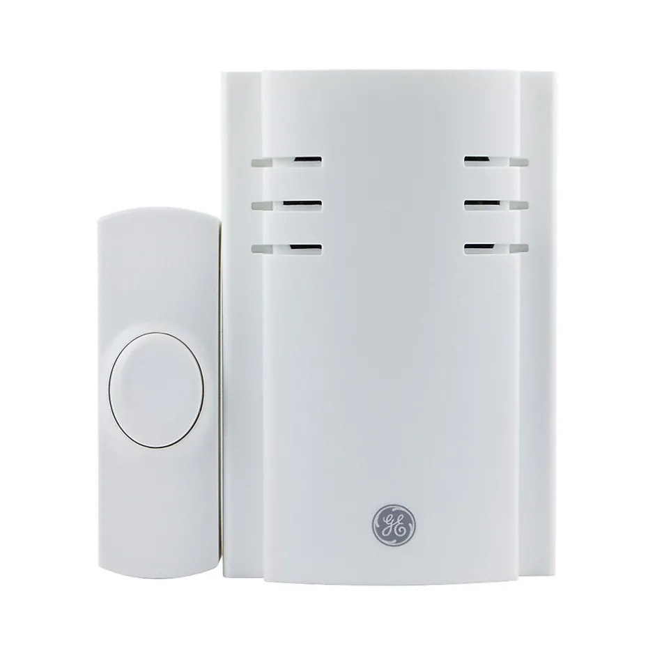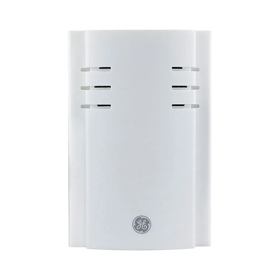 Hear when you’ve got guests arriving with this GE wireless plug-in door chime. The easy doorbell setup has a push button that operates at a range of 150′, and the simple device can connect with up to four different wireless buttons. Adjust the volume on this GE wireless plug-in door chime and choose one of eight sounds to suit your preferences.