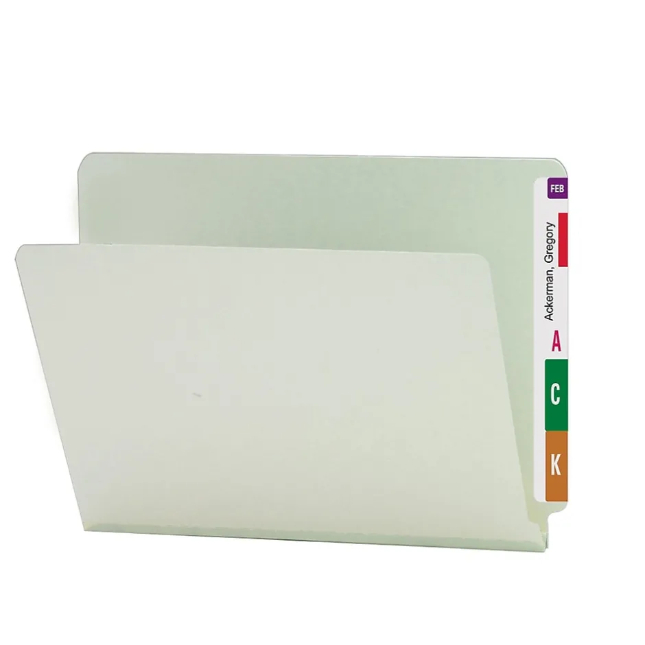 Store paperwork in these neatly organized Smead expansion file folders. The 25-point pressboard is heavy and resists tears for long-term use and frequent handling or transport out of the office, and the straight-cut tabs provide visible labels for fast identification. The 1-inch expansion of these Smead expansion file folders supplies plentiful storage space for large files and additional paperwork.