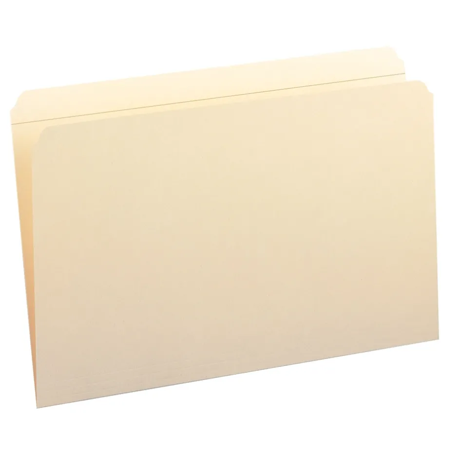 Store documents in file cabinets with these Smead legal-size manila file folders. The full-length tabs provide generous space for labeling, so you can add full names or color-coded label systems. Each tab features reinforced construction for added strength, and the standard thickness, heavy-duty material stands up to everyday use. These Smead legal-size manila file folders come in a 100-count box, providing an ample supply for transitioning your current filing system.