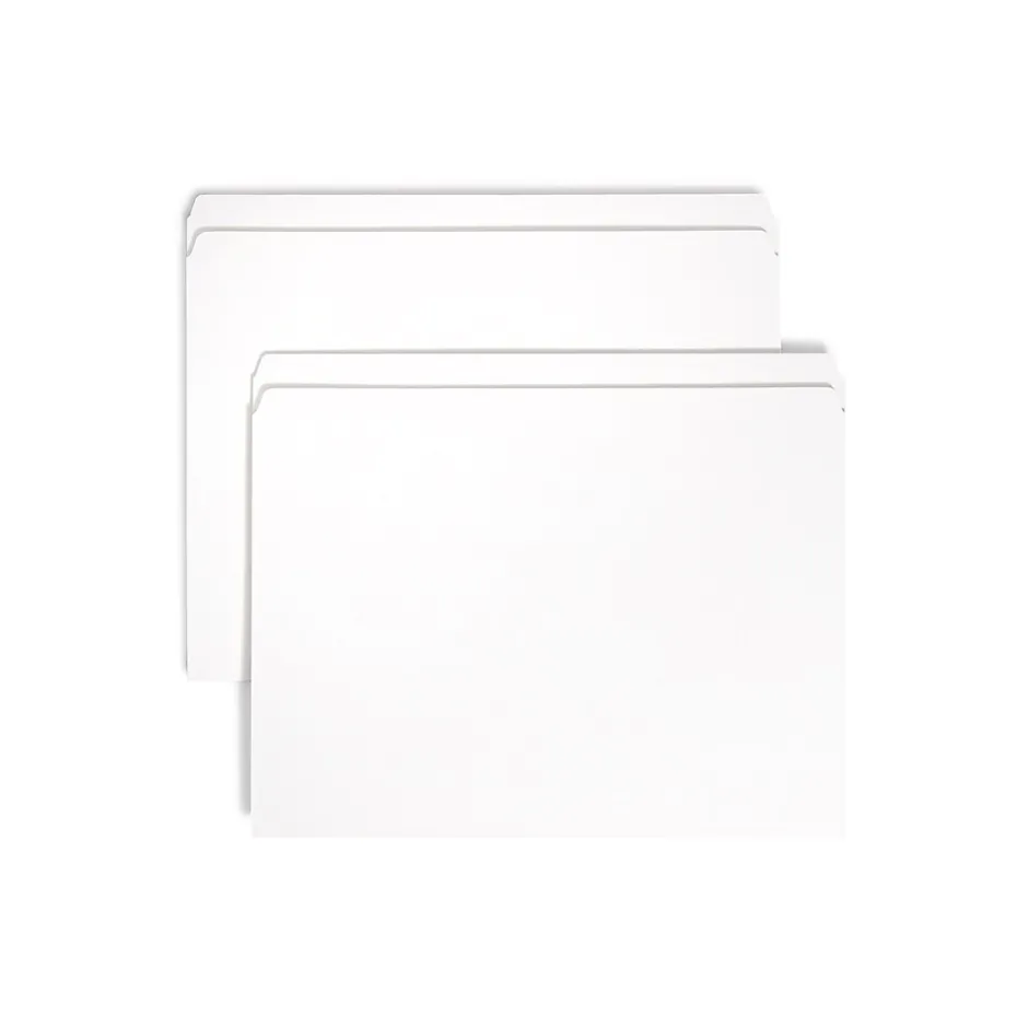 Fill your filing cabinets with these Smead reinforced letter-size file folders. These folders have a straight-cut design that lets you fit in lots of information about file contents, while the reinforced 2-ply tabs ensure they stand up to daily wear. These Smead reinforced letter-size file folders can hold any letter-size papers and are made with sturdy 11-point paper stock.