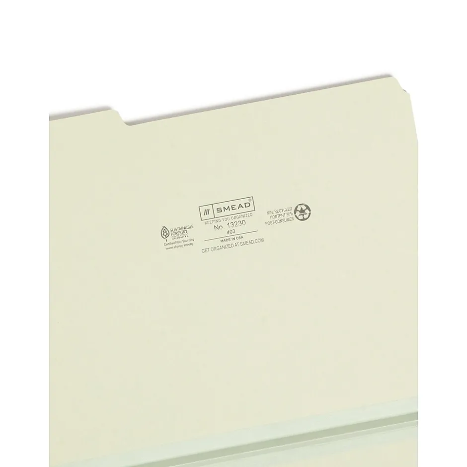 Sort and store paperwork with these pressboard file folders. The 1/3-cut assorted-position tabs provide ample space for printed or handwritten labels, making documents easy to find inside cabinet drawers. Each folder features a 1-inch expansion to accommodate thick stacks of paper, so you can consolidate existing files. With sturdy pressboard construction, these Smead letter-size file folders withstand everyday wear and tear.