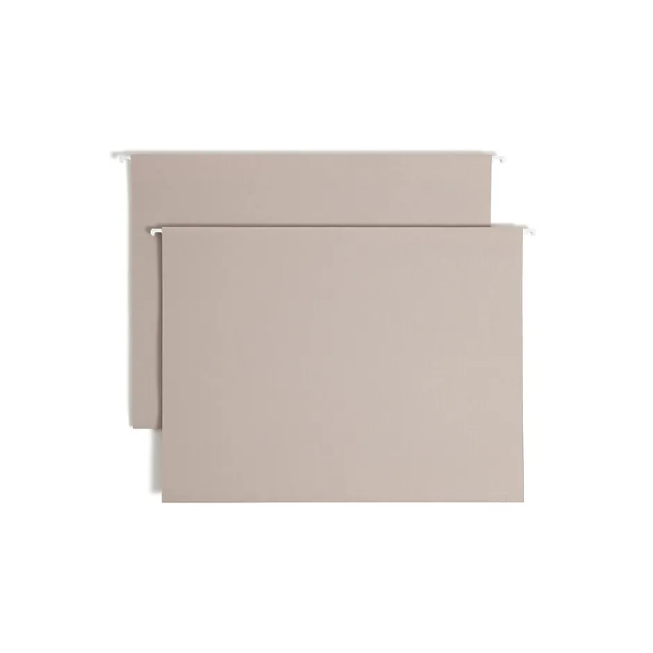 - Extra-capacity hanging folder is made of steel gray 14 pt. paper stock