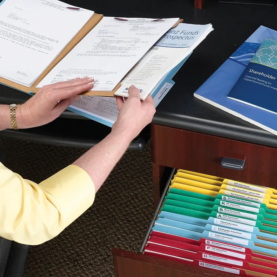 | Tab Position The number of notched tabs along the top or side of the file folder used for categorizing files.Hanging file folder tabs are repositionable to allow you to customize the tab position. | Straight |