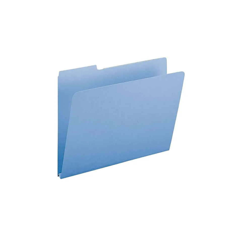 Retrieve paperwork quickly by using these blue file folders. Constructed from 23-point pressboard, these folders are sturdy and stand up to daily wear and tear, while the 1-inch expansion provides plenty of room for bulk files. These Smead letter-size pressboard file folders have 1/3-cut tabs with assorted positioning, making it easy to read labels.