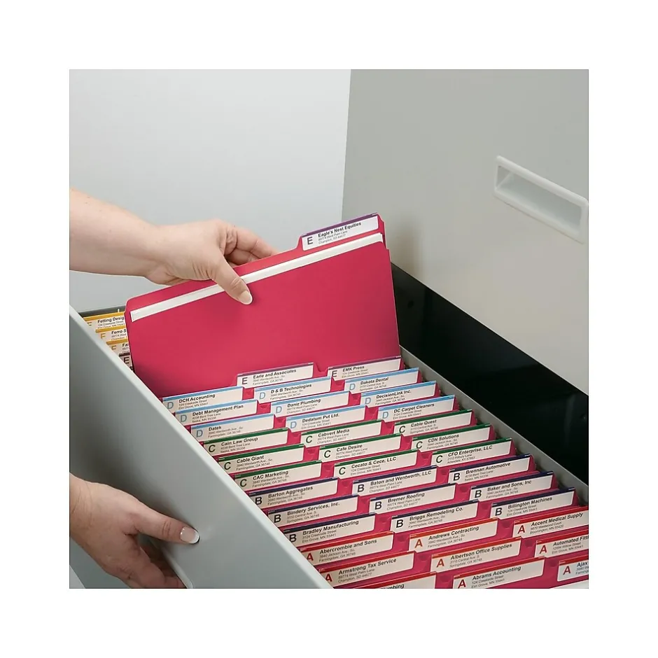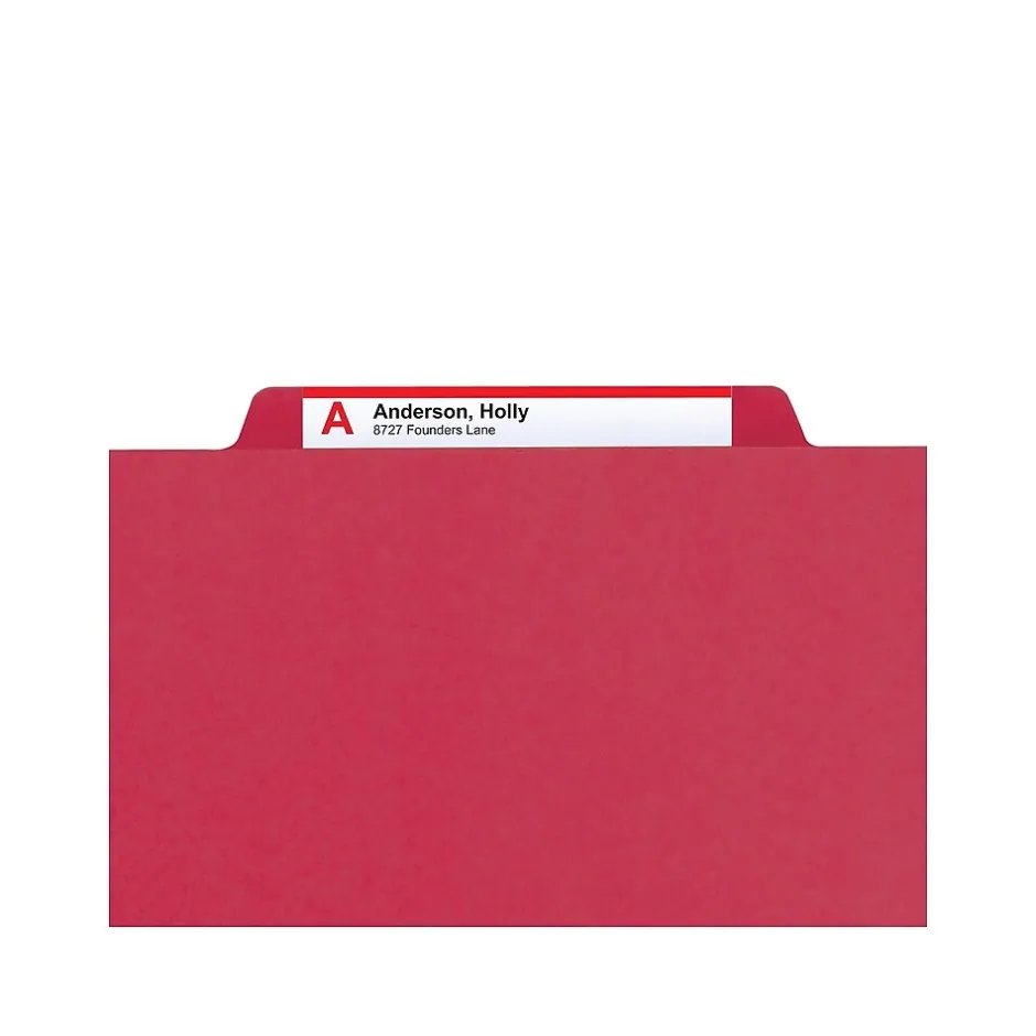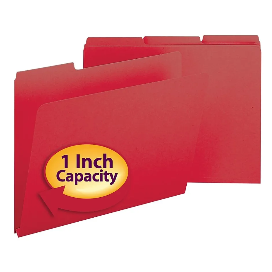 Gather office or warehouse documents together inside these letter-size file folders. Durable pressboard construction stands up to frequent handling, and the 1/3-cut-tab layout provides space for adding custom printed labels. The 1-inch-expansion capabilities mean you can fit more paperwork inside each folder. With a bright red color, these pressboard file folders make it easy to call attention to critical documents.
