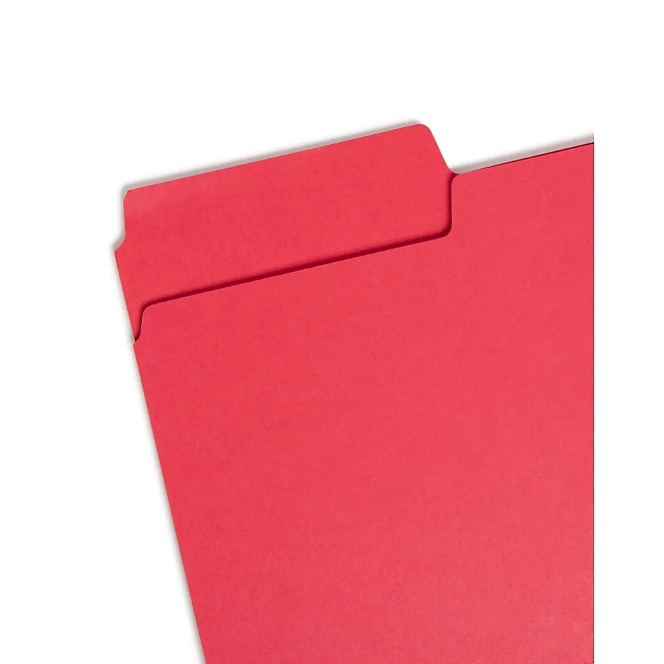 - Assorted color files in blue, red, yellow and green made from 14 pt. heavyweight stock
