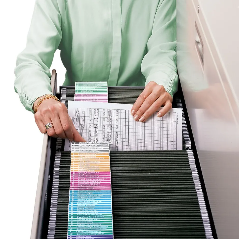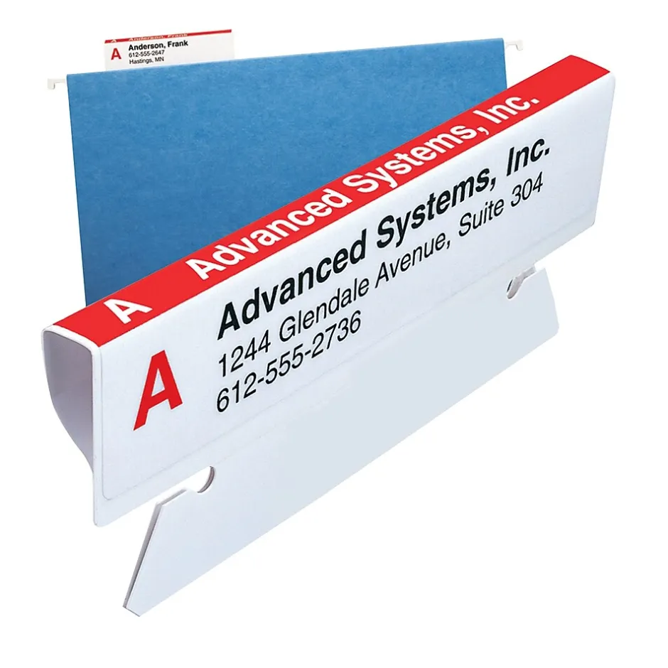 Ideal for office use, the Viewables and Arrange Labeling System Refill Pack is designed to label hanging file folders. These unique labels attach to 3 sided hanging folder tabs so they can be read from the front, top, or back. These labels add the efficiency of color coding your filing system and are laser and ink jet compatible. No more typing or handwriting tiny inserts for your hanging folder tabs. Print color-coded labels that affix to our patented Smead Viewables tabs which are readable from the front, top and back. Or print color-coded labels for standard top tab folders, classification folders, jackets or pockets to make finding information in your file fast and easy.