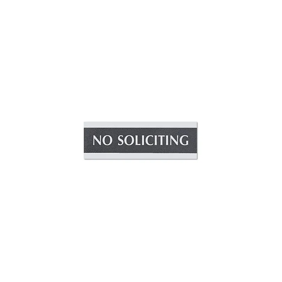 No Soliciting sign that Includes easel for countertop display as well as double-sided tape for door and wall display.