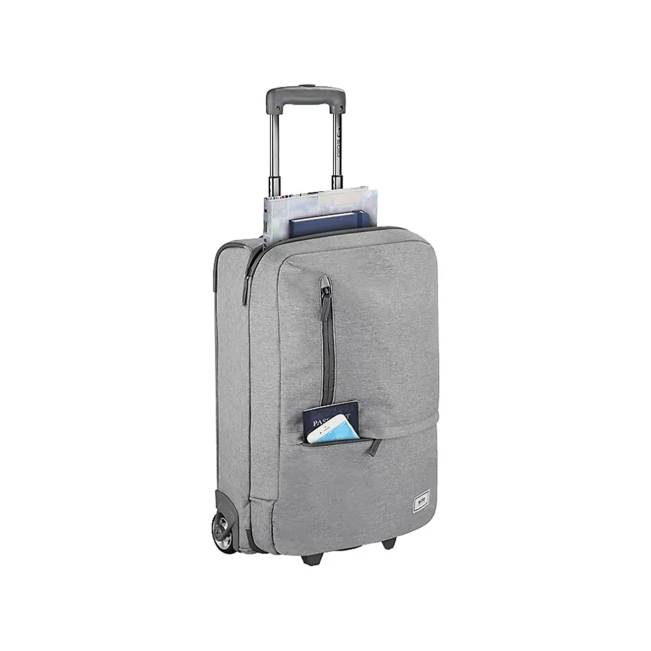 Solo New York is tackling environmental issues from all angles, in style. Designed in urban-cool gray, the Cycle collection brings a sustainable angle to sleek design, making green choices accessible to the masses. Each item in this collection is built with city-functionality in mind and offers an uncompromising style. Made from recycled pet bottles, this wheeled bag meets carry on requirements for most airlines; 2 easy access front zippered pockets and a telescoping luggage handle system.