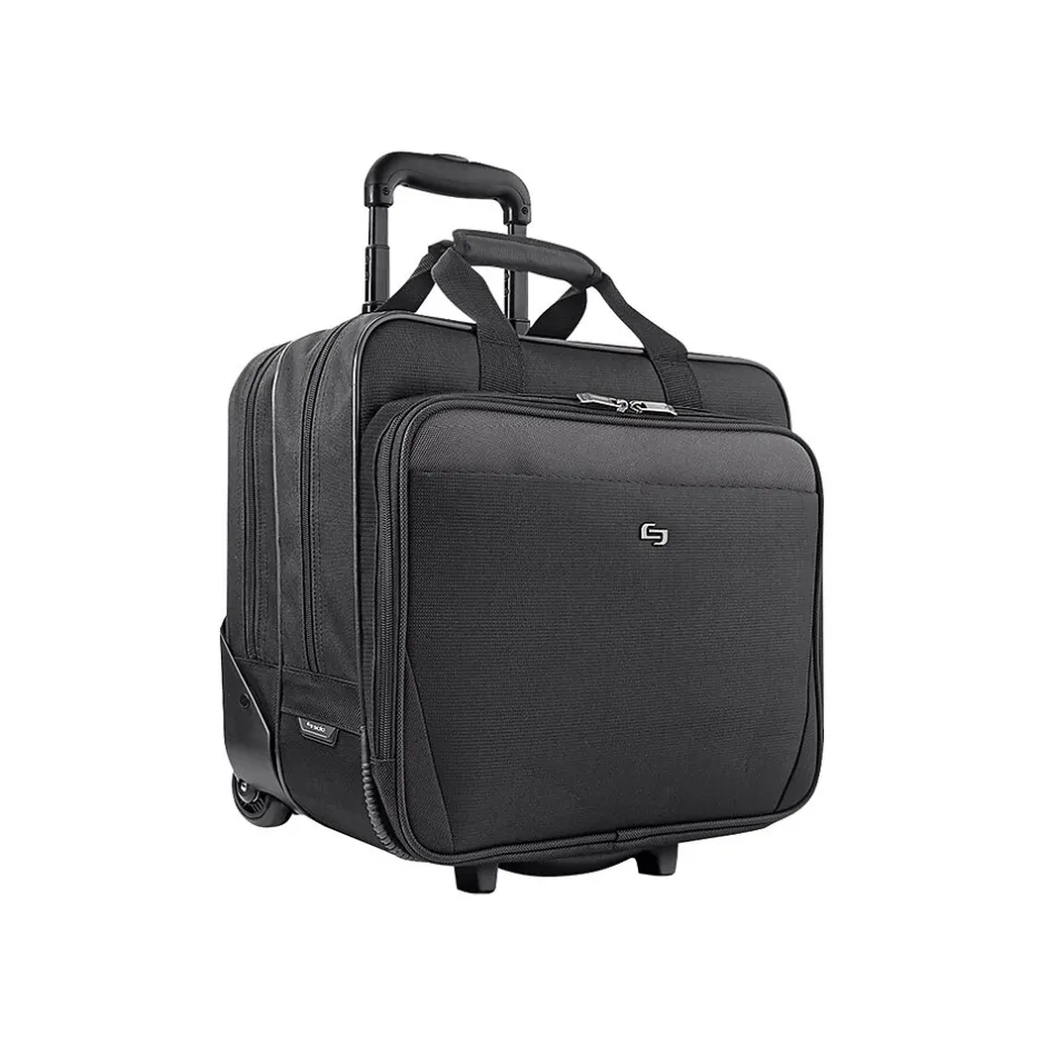 Maneuver your laptop around the airport or throughout the office building with this rolling case. The front pocket and zip-down organizer put travel papers and accessories within easy reach, and the push-button telescoping handle lets you control the bag’s forward motion. This black Solo New York laptop case has a dedicated pocket for a tablet for packing versatility.
