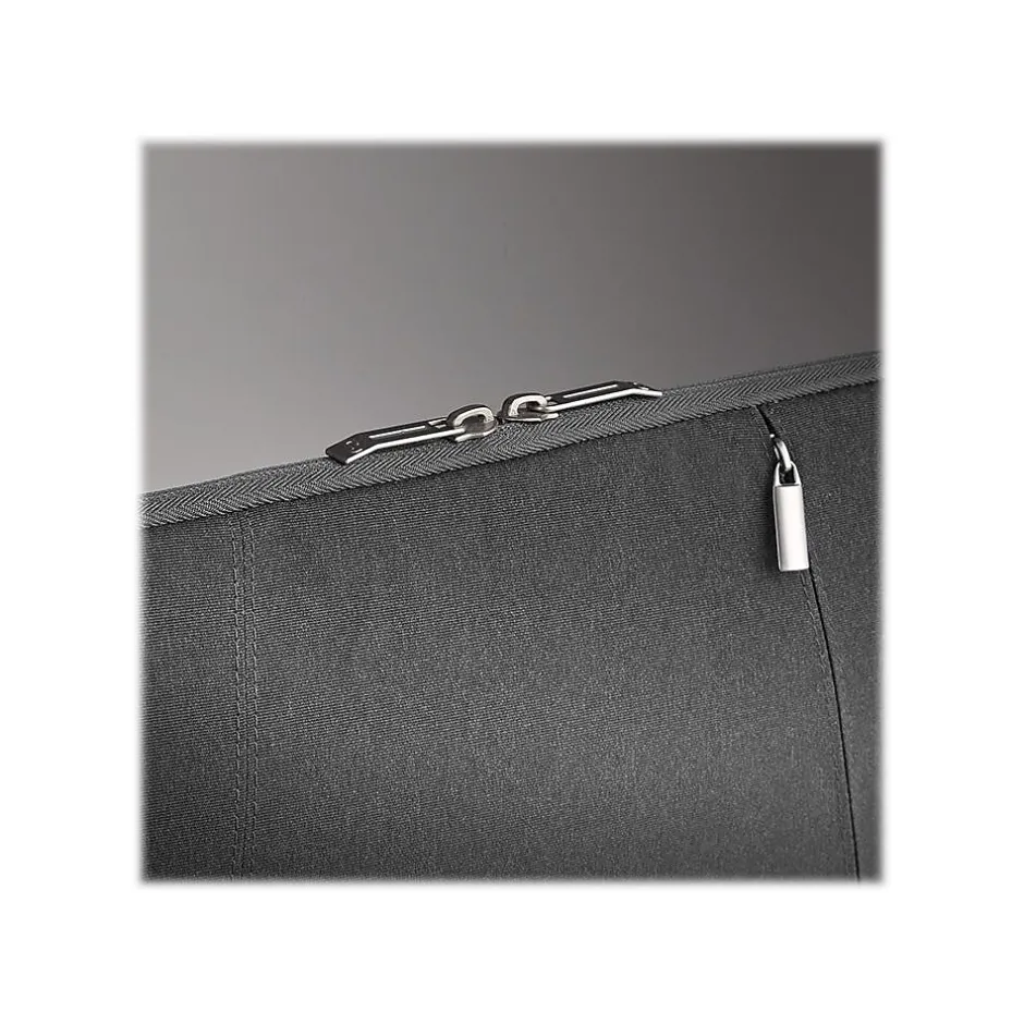 Stylishly protect your laptop with the Solo New York Oswald fully padded laptop sleeve. The sleeve is built with city functionality in mind and offers an uncompromising style. It is designed in urban-cool gray with scratch-resistant lining, zippered main compartment, and front quick-access pockets.