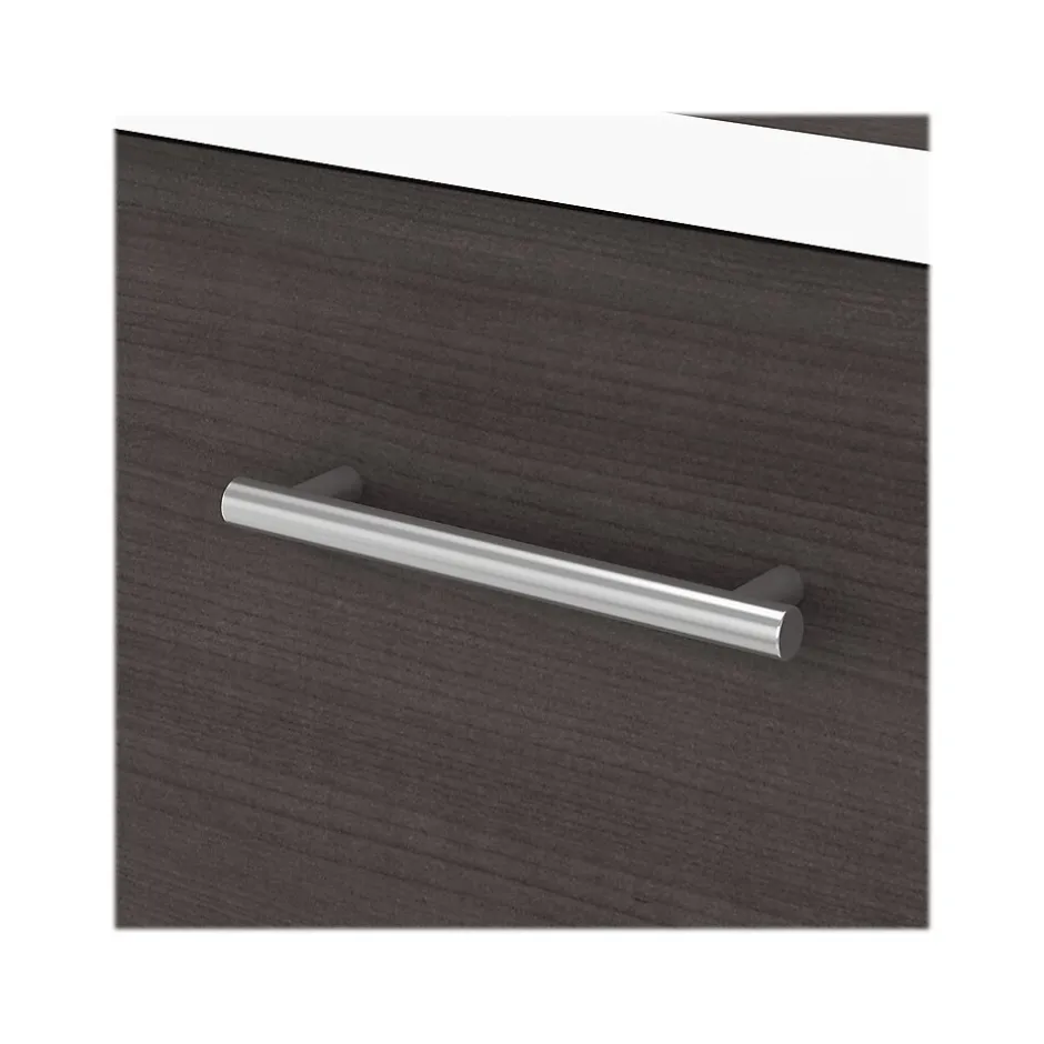 The Bush Furniture Somerset two-drawer lateral file cabinet provides an appealing home office storage solution. Two large file drawers open on smooth full-extension ball bearing slides for easy access to letter- and legal-size documents, even those all the way at the back. The drawers are designed to open one at a time for maximum stability, making this file cabinet a safe and family-friendly addition to your home. The height of the two-drawer file cabinet matches any Somerset desk (sold separately) to allow for an extended work surface when placed side by side. Transitional styling includes tapered leg accents, an attractive finish of your choice, and contemporary metal hardware. This lateral file cabinet is tested to meet ANSI/SOHO quality standards for safety and performance and is backed by the Bush Furniture 6-year manufacturer limited warranty.