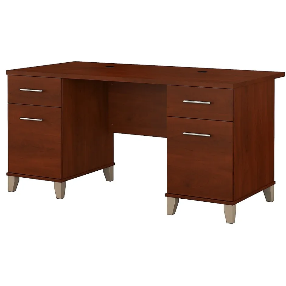 Make the best use of your workspace with the Bush Furniture Somerset 60W Office Desk. An ideal choice for your home office, the extended surface provides plenty of room to spread out and features wire management slots to keep cords in order. Stay organized with two box drawers to house miscellaneous office supplies and file drawers with ball bearing slides for storing letter-size documents. Transitional styling includes tapered leg accents, a stylish finish and contemporary metal hardware for an alluring appearance. This quality furniture is tested to meet ANSI/SOHO standards for safety and performance and is backed by the Bush Furniture 6 Year Manufacturer’s Warranty. See the full Somerset Collection for coordinating items to complete your personal workspace. American made with U.S. and imported parts.