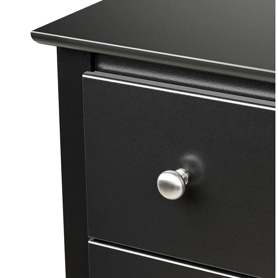 Prepac™ 2 Door armoire in black finish is constructed from CARB-compliant laminated composite woods which give an elegant look to any room. Drawer chest has a sturdy top to pile on your books, cell phone, alarm clock, lamp and more.