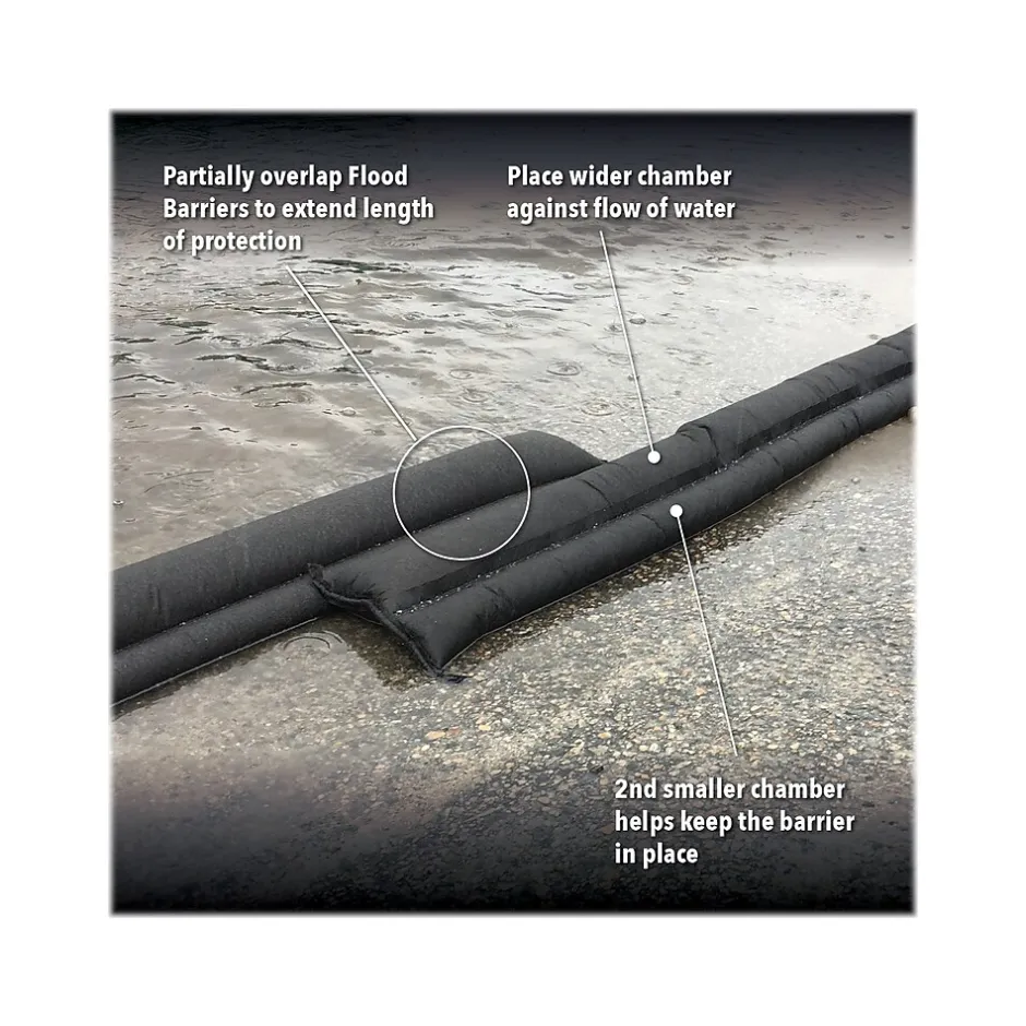 The Quick Dam flood barrier absorbs, contains, and diverts problem flood water. The barrier is water-activated and comes in a 10′ length. The flood barrier absorbs, swells, and gels oncoming water on contact to create a durable barrier. Compact, lightweight, and easy to use. Perfect to keep stored away until needed. Keep your home and property protected from the dangers of flooding.