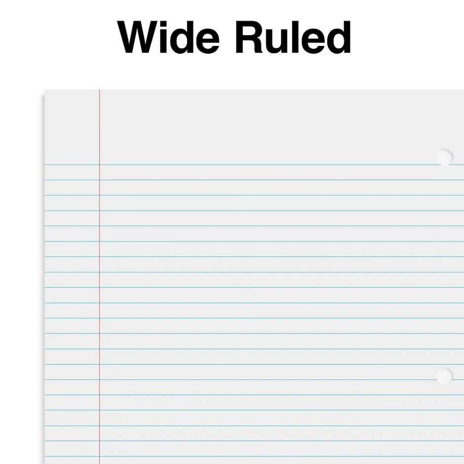 Take care of writing projects this wide-ruled red 1-subject notebook. Spiral binding makes it easy to turn pages smoothly while helping prevent snags, and the edge is 3-hole punched, so you can use this 70-sheet notebook with any standard 3-ring binder. This TRU RED 8 x 10.5-inch red 1-subject notebook has wide-ruled spacing that lets you write with large, clear letters for easy readability.