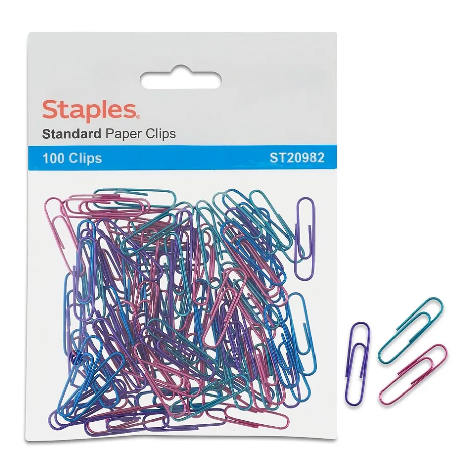 Staples #1 paperclip is made of metal that has vinyl-coated surface and corrosion resistant finishing. Paperclip helps to keep loose papers held securely with a non-slip finish. Available in assorted striped patterns.