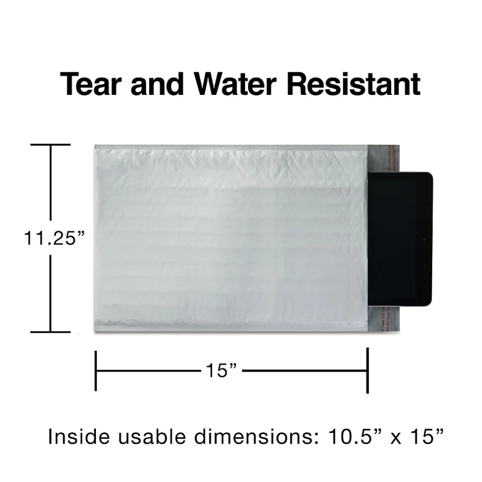 Keep breakable items safe with these EasyClose poly bubble mailers. The poly material provides the durability needed to withstand the rigors of shipping, while the QuickStrip closure feature makes sealing contents safely inside simple. These EasyClose poly bubble mailers have 3/16-inch bubbles to provide cushioning, so fragile objects stay safe.
