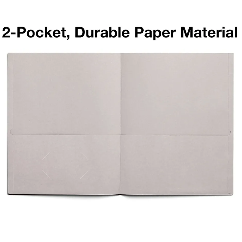 - Presentation folder in gray color made of sturdy paper stock resists tearing