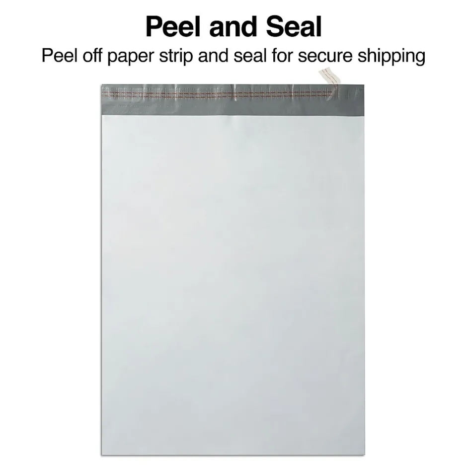 Keep items dry during transport in these water-resistant poly mailers. The smooth surface is easy to write on and accepts labels and stamps. These pouches have crisp white exteriors that make writing easy to see and are tear-resistant, helping ensure the contents stay intact. The spacious design of these Staples 19 x 24-inch poly mailers accommodates items ranging from documents to clothing, ideal for retail operations.