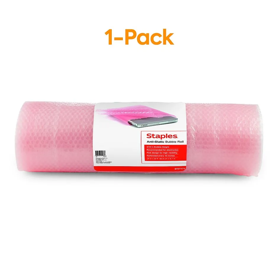 Protect small and large electronics with this 3/16-inch extra-wide bubble roll. This protective bubble roll reduces 90 percent of static electricity in a matter of seconds, and the lightweight nylon barrier bubbles minimize air loss, which ensures effective cushioning so all contents remain secure during the shipping process.