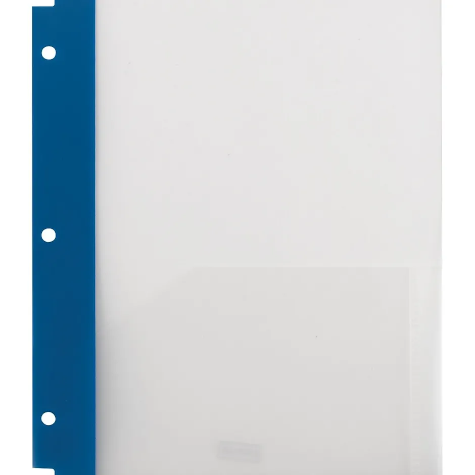 The Staples 2-pocket poly folder with a frosted navy spine is made of a durable poly material to protect your documents while maintaining its shape.