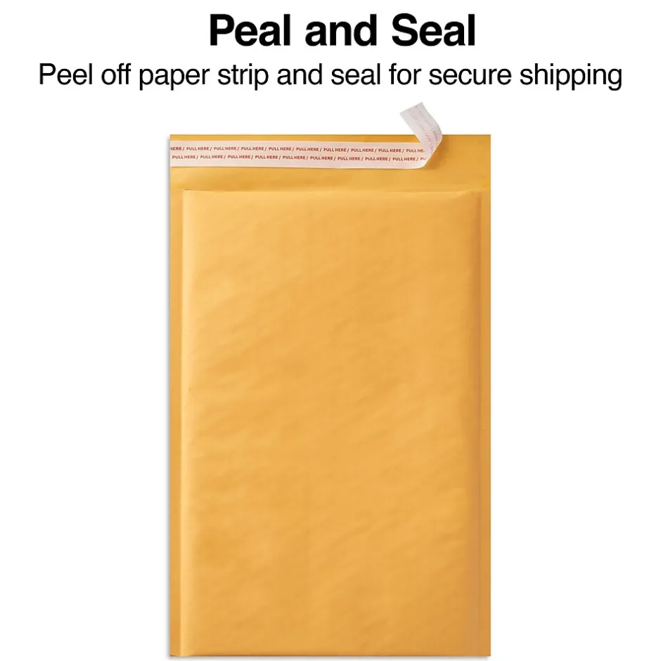 Meet a range of business mailing needs with these bubble mailers. The bubble padding provides extra cushion and protection from accidental bumps, and the kraft paper exteriors make these envelopes great for shipping parts, inventory and a variety of other items. Lightweight construction supports cost-effective shipping, while the self-adhesive closures make these professional 5.75″ x 9″-inch kraft bubble mailers easy to seal.