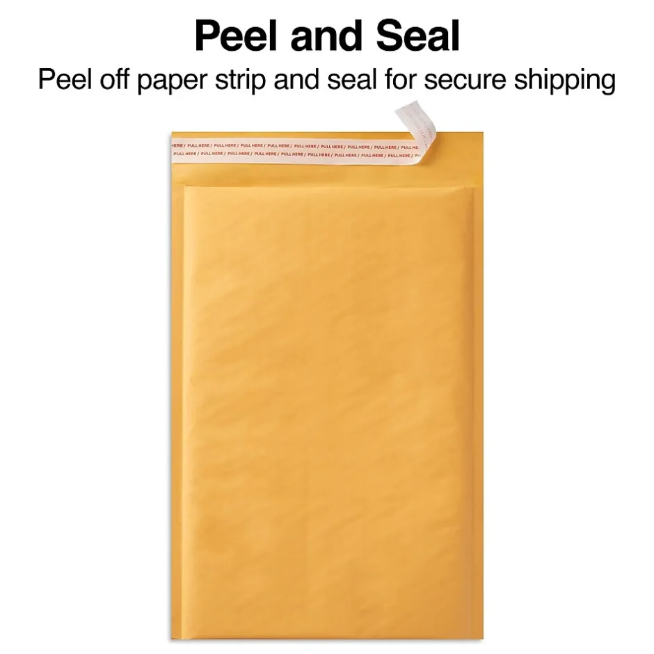 Protect fragile goods with these bubble roll cushioned mailers. Each one is lined with 3/16-inch bubbles to protect contents from damage, while the adhesive strip lets you easily seal contents shut. These EasyClose cushioned mailers come in a pack of 12 and are made with 100 percent recycled kraft paper to help the environment.