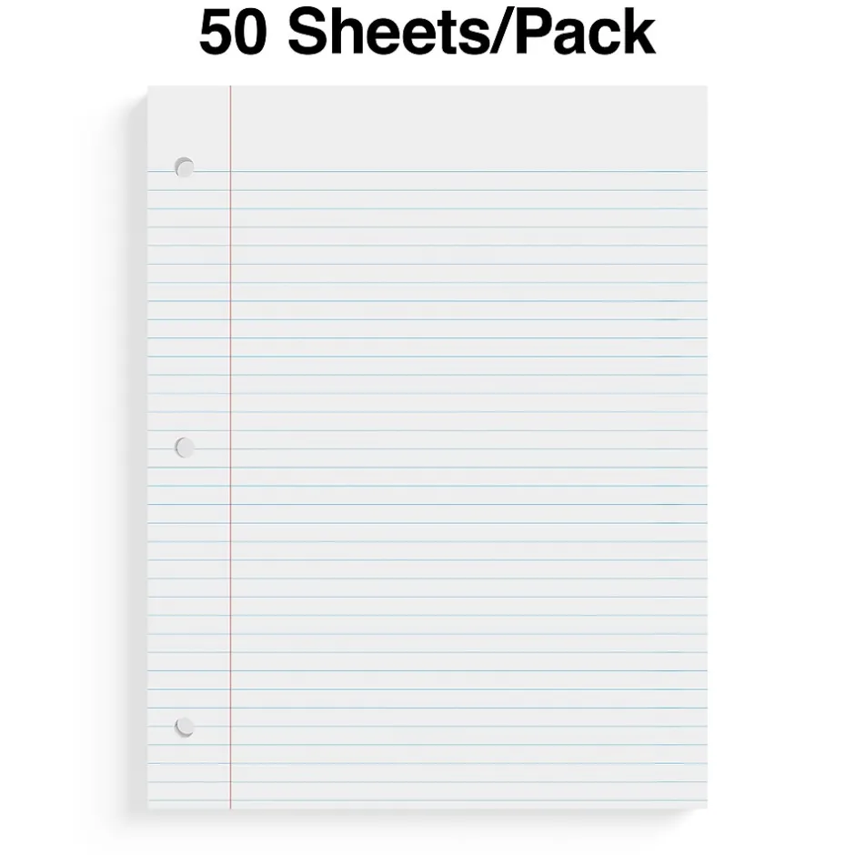 Draw and write on this heavyweight filler paper. Each sheet is three-hole punched, making it an easy fit into most standard three-ring binders, while the college ruled sheets make the most of your writing space. This Staples Business Essentials 8.5 x 11-inch premium heavyweight filler paper delivers a sturdy, professional feel, and the 50-sheet pack provides an ample supply.