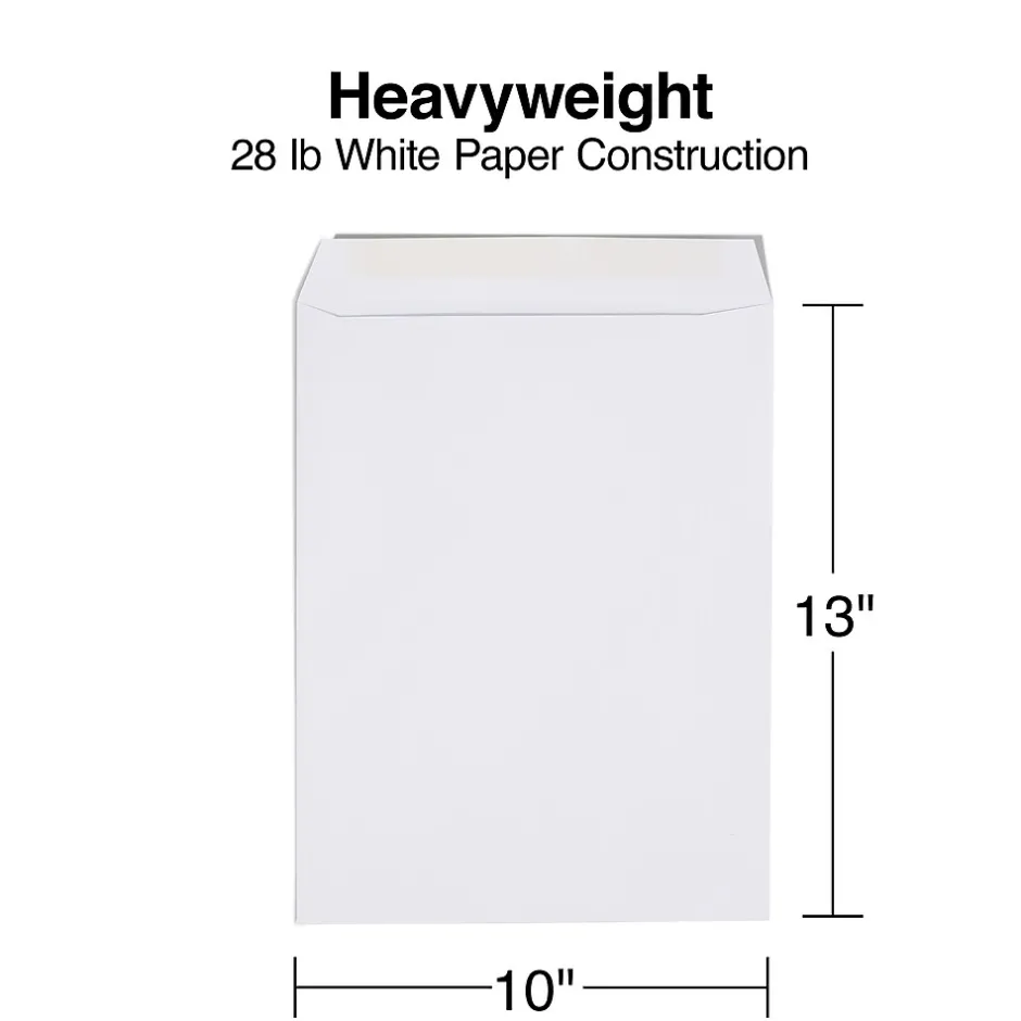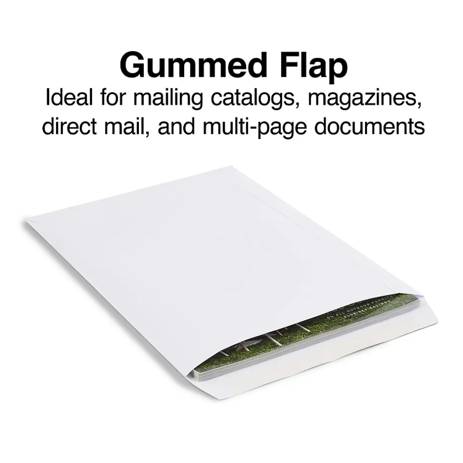 Pack and ship important documents or published works with this 250-count box of Staples catalog envelopes. Gummed flaps provide a secure seal to keep contents safely contained during transport, and the bright white paper has a professional appearance and lets addresses stand out. The 28-pound woven paper of these Staples catalog envelopes supports and protects documents with extra room for padding.