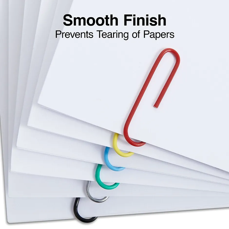 Sort and color-code papers by using Staples Smooth jumbo vinyl-coated paper clips in assorted colors. This tub contains 500 paper clips, and each color has its own divided section for easy access. Clips are made from metal coated in vinyl, so you get steel holding power with smooth, snag-free edges. Staples jumbo vinyl-coated paper clips are sized to hold thicker bundles and are perfect for use with brochures, packets and promotional materials.