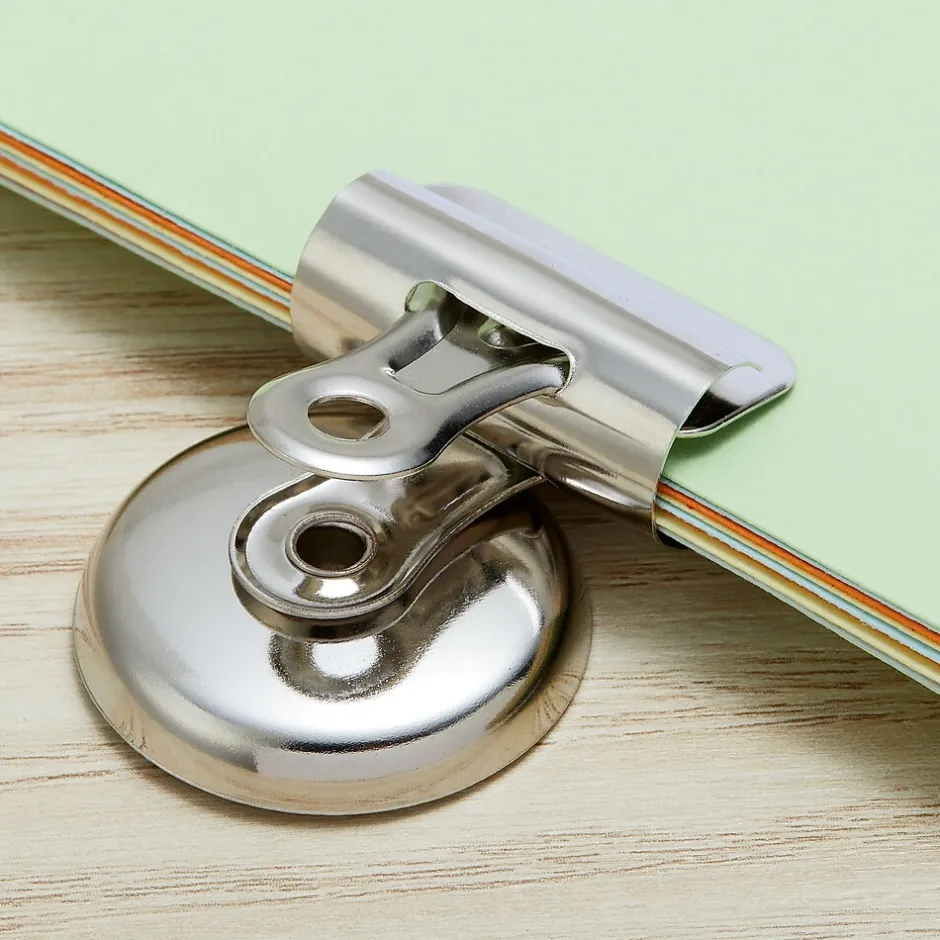 - Magnetic bulldog clips stick instantly to any steel surface