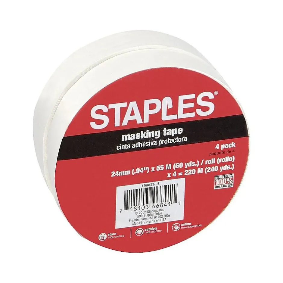 Keep paint from getting on unwanted areas or label items with this masking tape. Made out of a durable paper material, this tape resists curling and features a 3-inch core, so it’s easy to grip while applying. This Staples masking tape comes with four rolls per pack, each of which have 60 yards of tape, making it ideal for large projects.