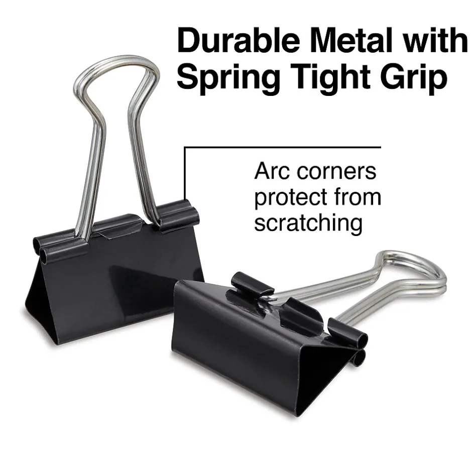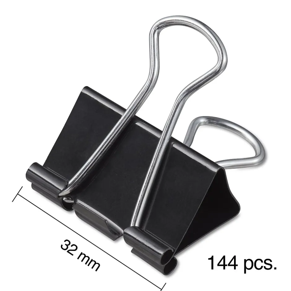 Keep documents and other paperwork organized and tidy with these black metal binder clips. Each clip is built with sturdy metal and plastic, while the spring design provides a strong grip on papers. These Staples medium binder clips come in a massive pack of 144 units, making them ideal for those with lots of documents to manage.