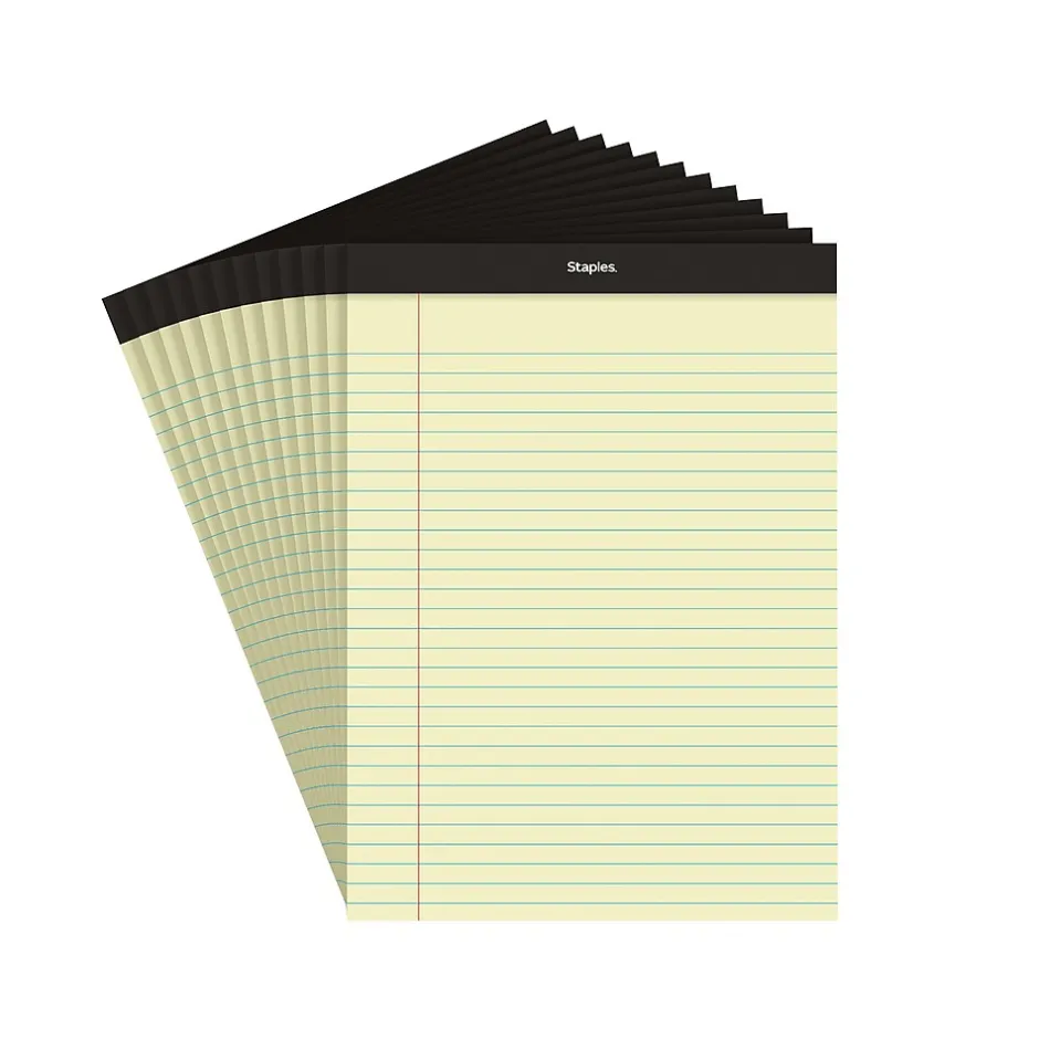 Staples wide-ruled yellow letter pads measure 8.5″ x 11.75″ and are micro-perforated for neat and easy sheet removal. These notepads are easily transportable and help you keep your writing neat and organized.