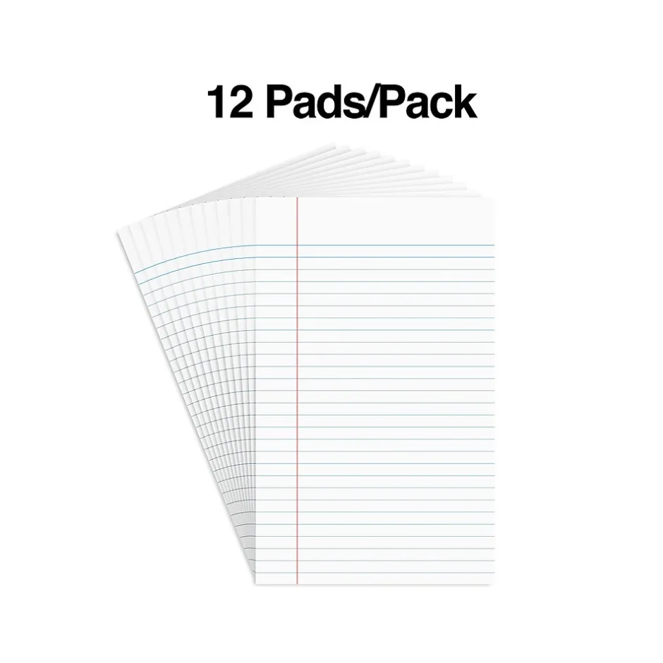 Provide your office with a reliable supply of these white 50-sheet notepads. The narrow ruling lets you write more lines of text, while the white pages are a great backdrop for legible notes. The glue-top binding makes it easy to flip through sheets. These Staples 5 x 8-inch white narrow ruled notepads are a perfect size for taking to meetings and lectures.