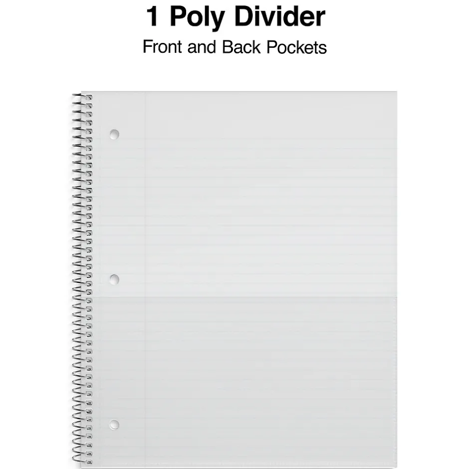 Record important details about projects, meetings and other presentations with this black 1-subject notebook. Featuring a durable front cover and resilient coil, this notebook easily withstands regular use and everyday wear and tear. This Staples Premium 8.5 x 11-inch black poly 1-subject notebook contains 100 college-ruled sheets to make the most of your writing space.