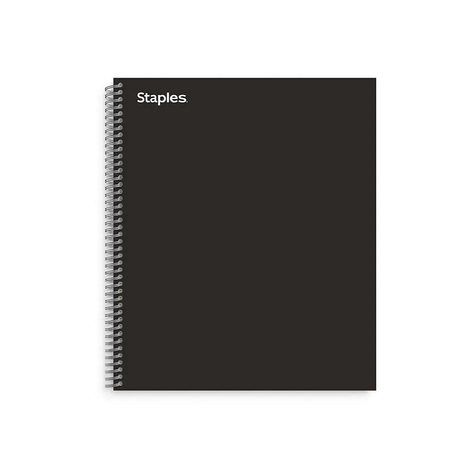 Come to your business meeting or class prepared with this 90-sheet premium paper notebook. The strong twin-wire coil binding supports flat positioning so you can find information quickly, while the durable cover protects your documents. Slip cards and loose papers in the convenient pocket divider. This Staples Premium 8.5 x 11-inch black college-ruled notebook has convenient perforations for clean page removal.