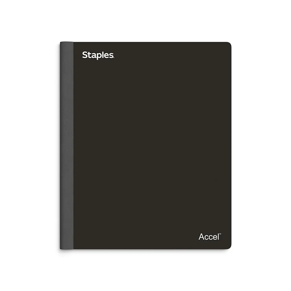 Manage multiple classes or meetings easily with this black 3-subject notebook. The 150 college-ruled sheets ensure efficient use of space, while the twin-wire spiral binding allows the pages to lay completely flat for easy access. This Staples Premium 8.5 x 11-inch black 3-subject notebook features a perforated design for simple, tear-free removal and the durable polypropylene cover and Spine Guard construction resist snagging and damage.