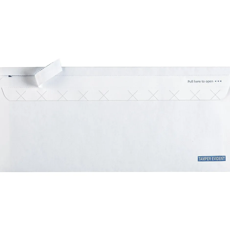 Make sure that sensitive information and paperwork remain completely sealed and confidential with these tamper-evident envelopes. Featuring a security tint that masks the contents inside, these envelopes are ideal for departments that frequently deal with private information. The #10 Staples security-tint envelopes have a tamper-proof seal that makes it easy to detect if the envelope has been opened.