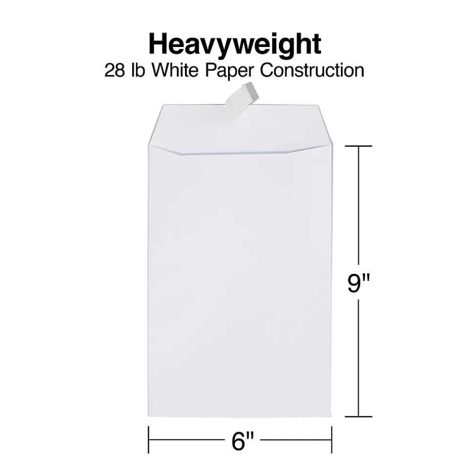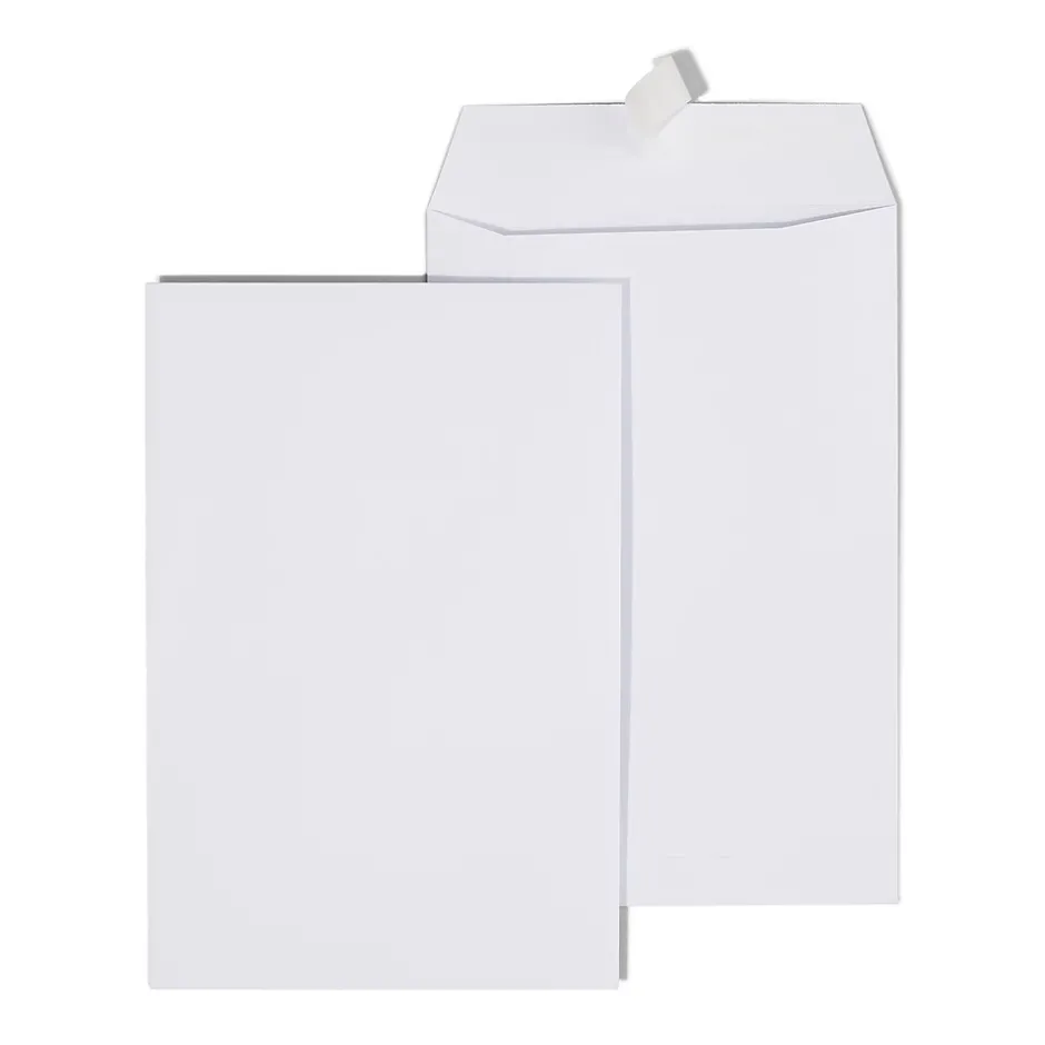 Keep important correspondence safe with these Staples EasyClose white wove catalog envelopes. Each envelope is crafted from 28-pound wove paper and is white, so any text or labels you put on them stand out for easy readability. These Staples EasyClose white wove catalog envelopes are easy to seal shut thanks to the EasyClose design that lets you simply peel and close.
