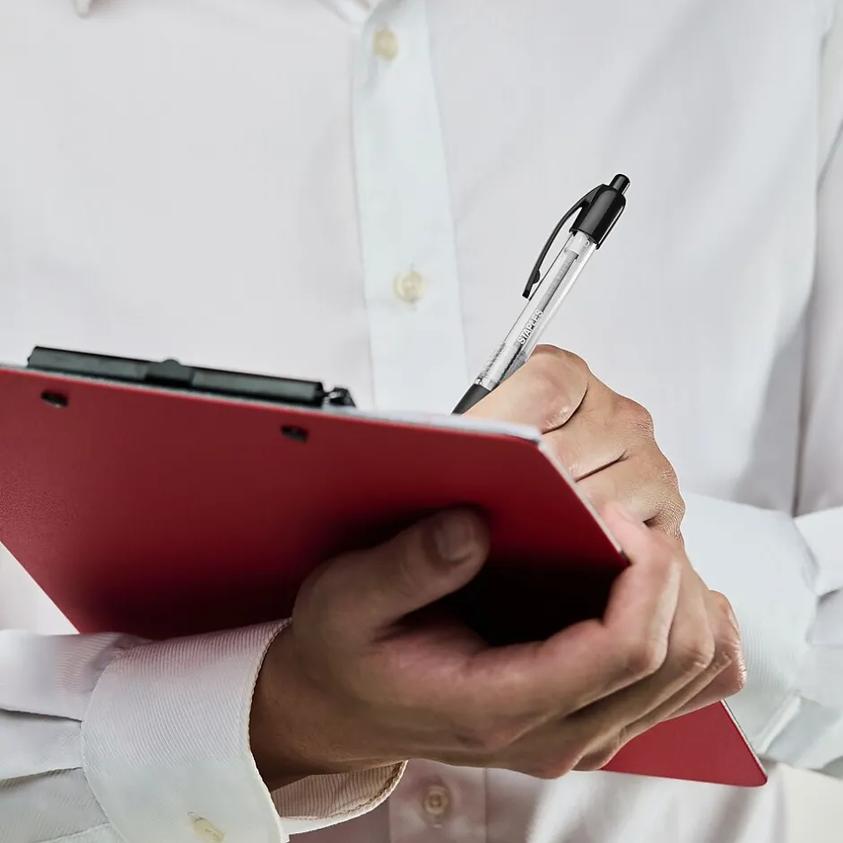 The retractable ballpoint pen with black ink features a medium 1.0mm tip for bold writing. This pen has a grip for a comfortable writing experience and is sold as a convenient 12 pack.