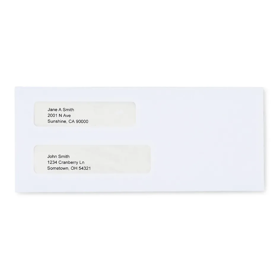 Staples Reveal-N-Seal 67539S #8 white double window envelope measuring 3 5/8″ x 8 5/8″, features strong, tamper-evident seal to protect confidential documents. It has small perforations along the flaps for tampering. This security-tinted envelope offers self-sealing closure that requires no moisture to seal.