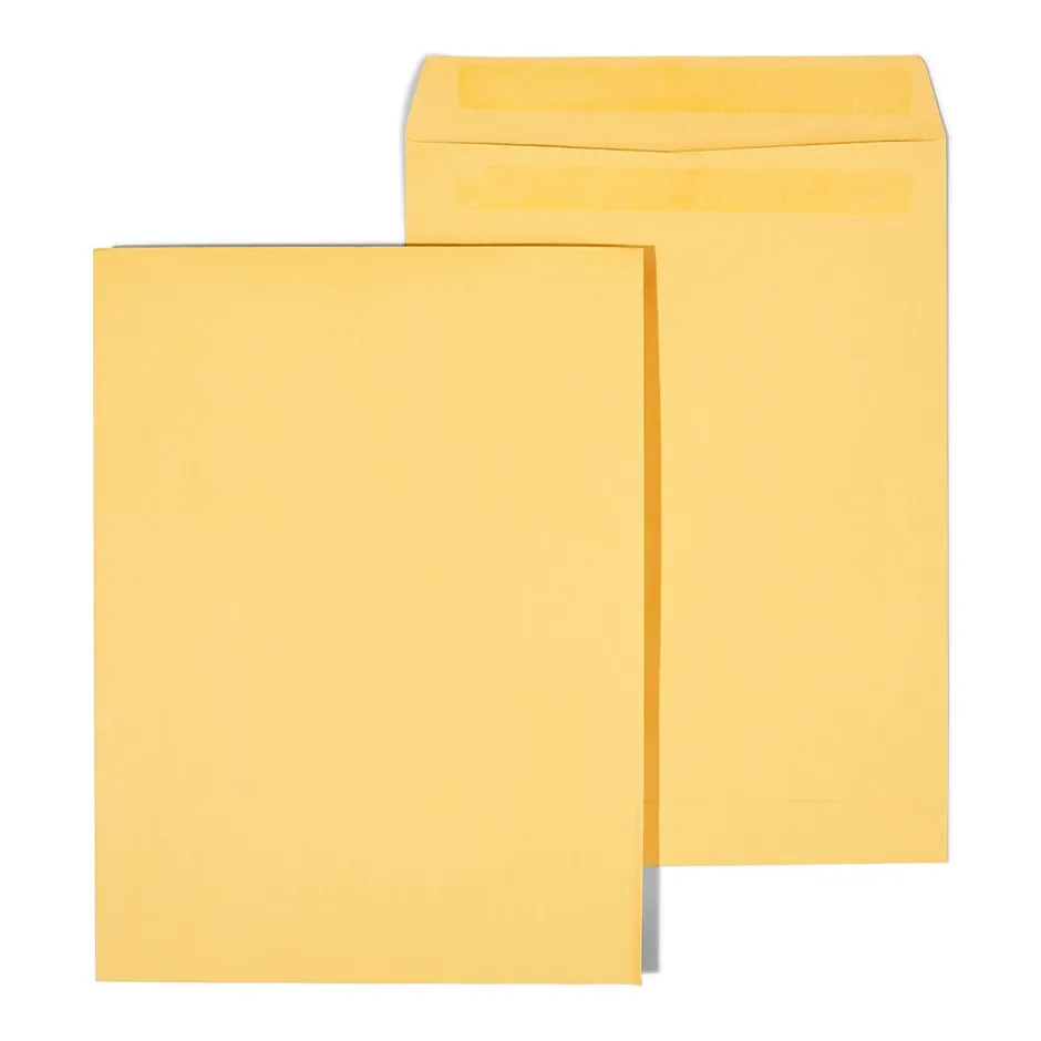 Transport important papers with these self-sealing catalog envelopes. Each one in this 250-count box features heavily gummed flaps to seal documents securely inside, and the sturdy brown kraft material ensures these envelopes are durable enough for mailing or daily handling around the office. These Staples kraft catalog envelopes are ideal for use with thicker bundles of paper, magazines and brochures laid flat without creases.