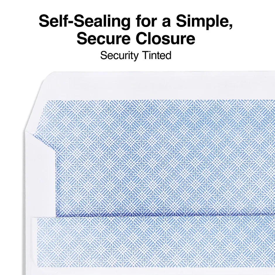 Protect private information during the mailing process with these #10 left-window envelopes. The self-sealing closures keep paper securely tucked inside, while the security tint hides sensitive data safe from view. Each of these envelopes features 24-pound wove construction for added strength and durability. These Staples #10 self-sealing envelopes feature conveniently located windows to keep recipient mailing addresses clearly visible.