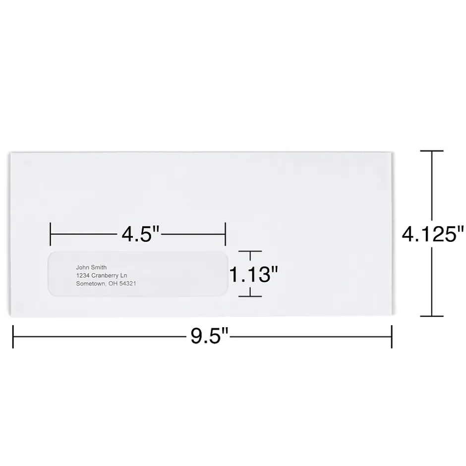 - These envelopes measure 4 1/8″ x 9 1/2″ in size, providing enough space for your mail
