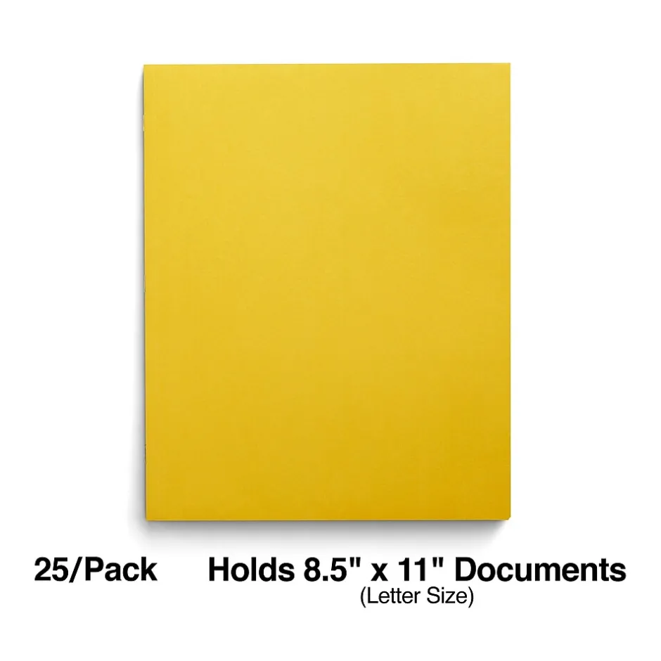 Stock up classrooms with these Staples school-grade two-pocket yellow folders. Each folder has a slot for a business card and can hold up to 25 pages per pocket, totaling a maximum of 50 pages, so there’s plenty of room for assignments and handouts. These Staples school-grade two-pocket yellow folders are sold in 25-packs, so there’s enough for each student in the class.